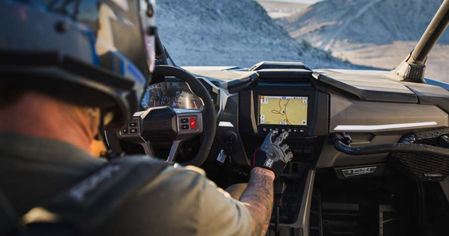 - RIDE COMMAND Offroad-GPS integriert in ein 7"-Display mit Rückfahrkamera